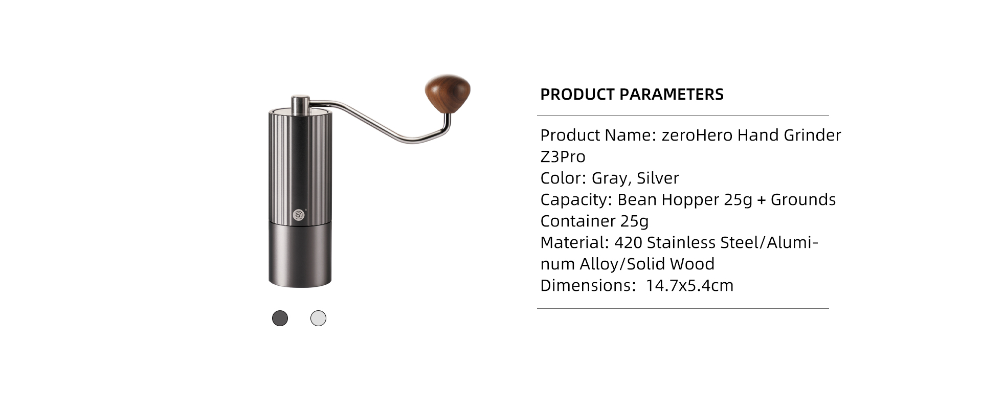 Product Name: Z3Pro Manual Grinder Burr:38mm 6 axis titanium coated stainless steel burr Color: Gray, Silver, Green, Purple, Brown Capacity: Bean Hopper 25g + Grounds Container 25g