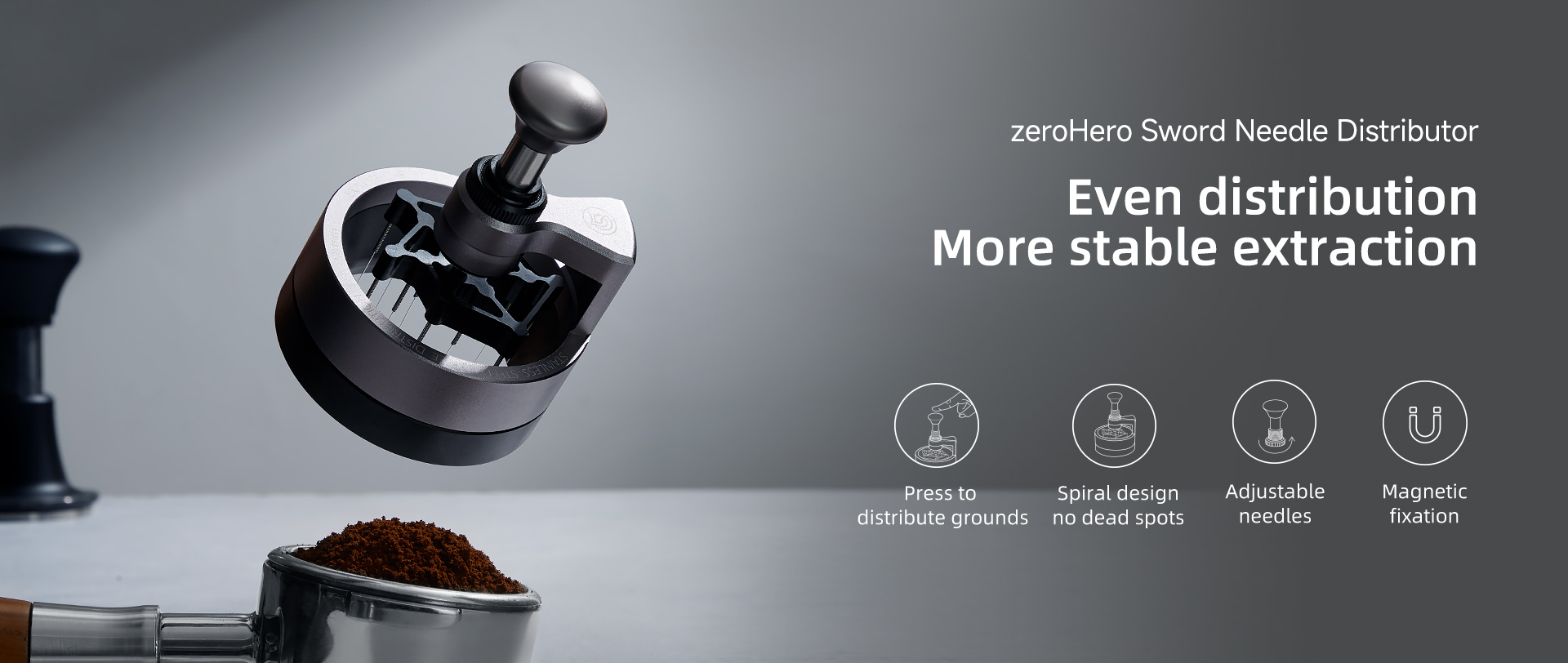 Press to distribute grounds Spiral design, no dead spots Adjustable needles Magnetic fixation